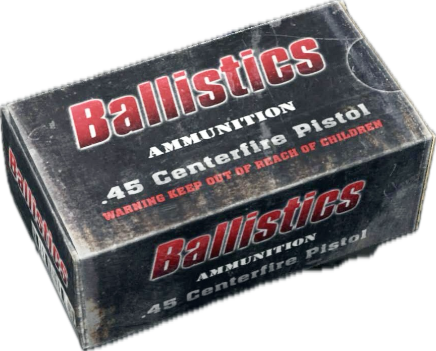 弾薬箱には、弾道弾薬 .45 CENTERFIRE PISTOL(45口径ピストル)と表記されている