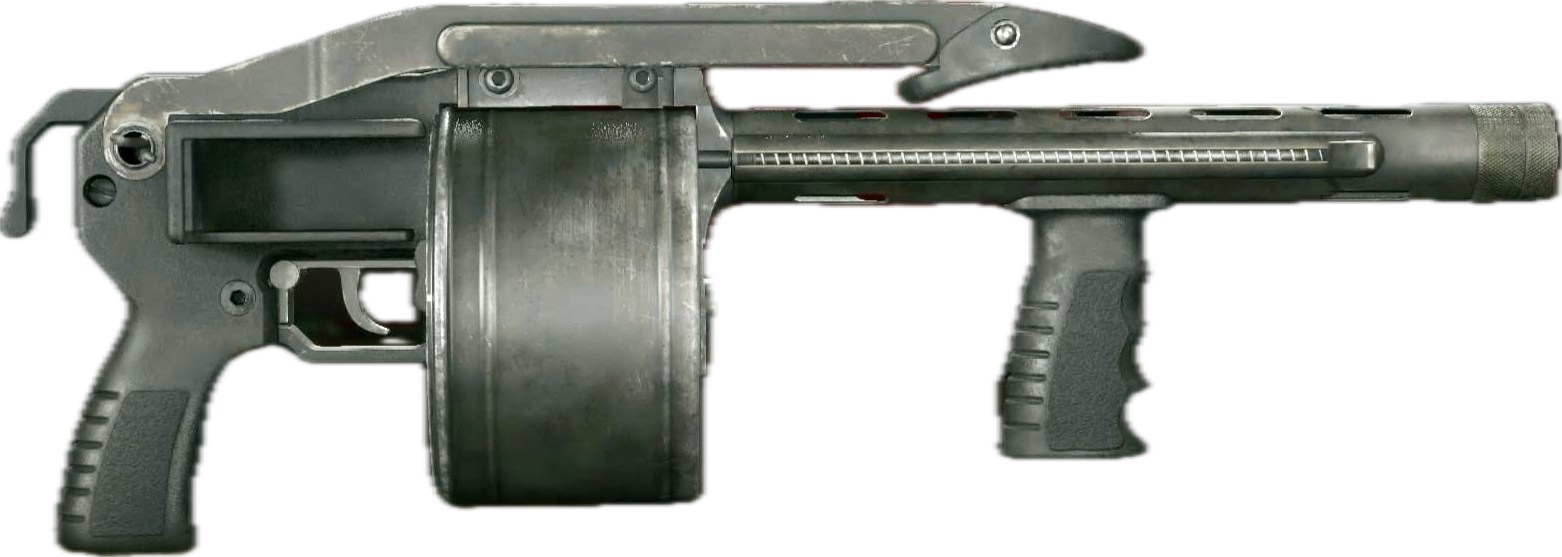 - 広範囲に細かい粒状の弾丸(ショットシェル)を高速で発射する銃火器