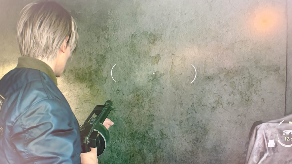 主に横方向の広い範囲に散弾をばら撒くというショットガンの成り立ちに逆行することになるが、弾丸のばらつきを最低限に抑えてなるべく集約できるようにしたライオットガンが、RE4のボス級の敵への対抗手段としてうってつけとなる