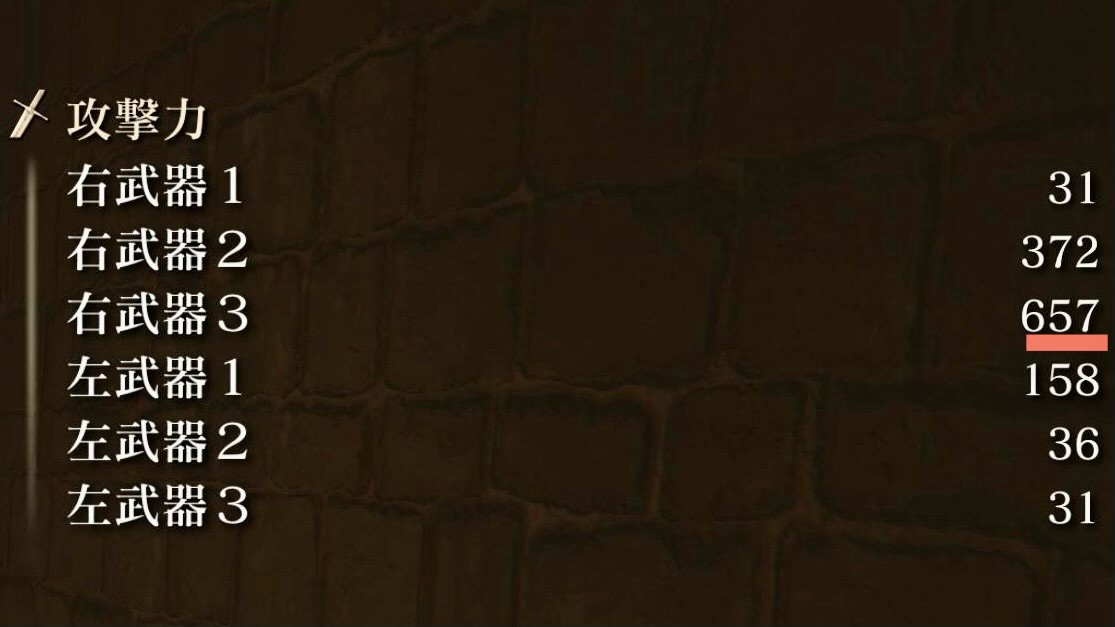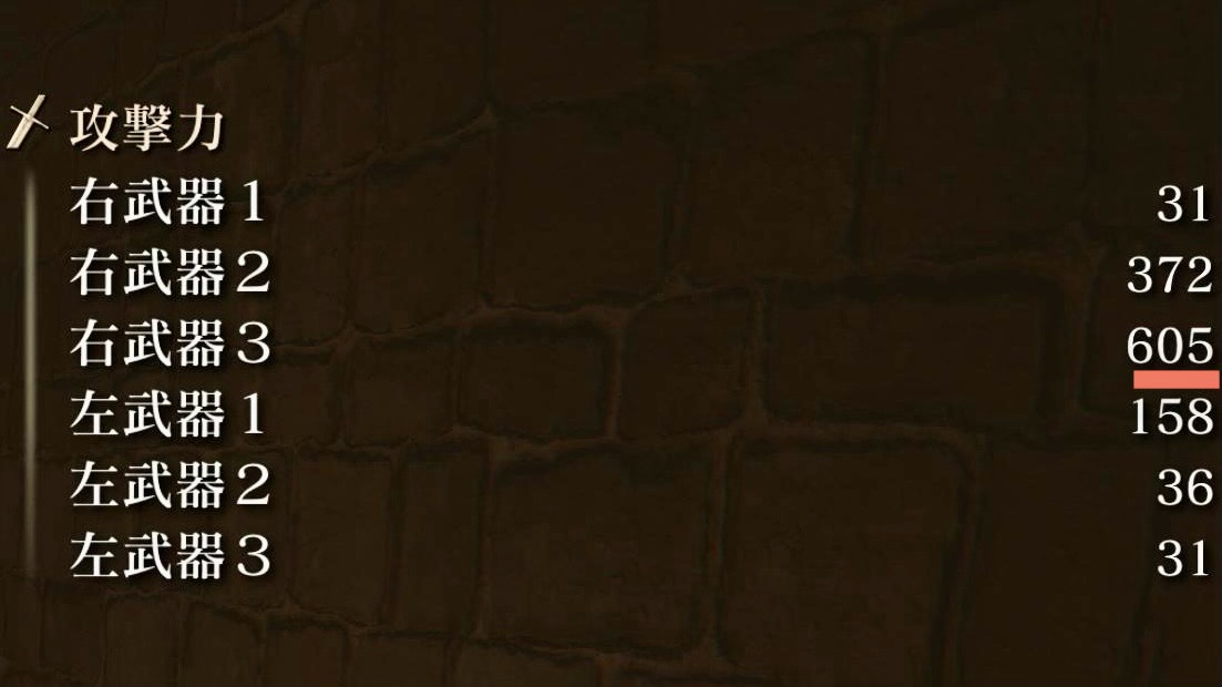 補正は筋力と技量のみとなり、いずれも武器強化することで、補正が1ランクUPする