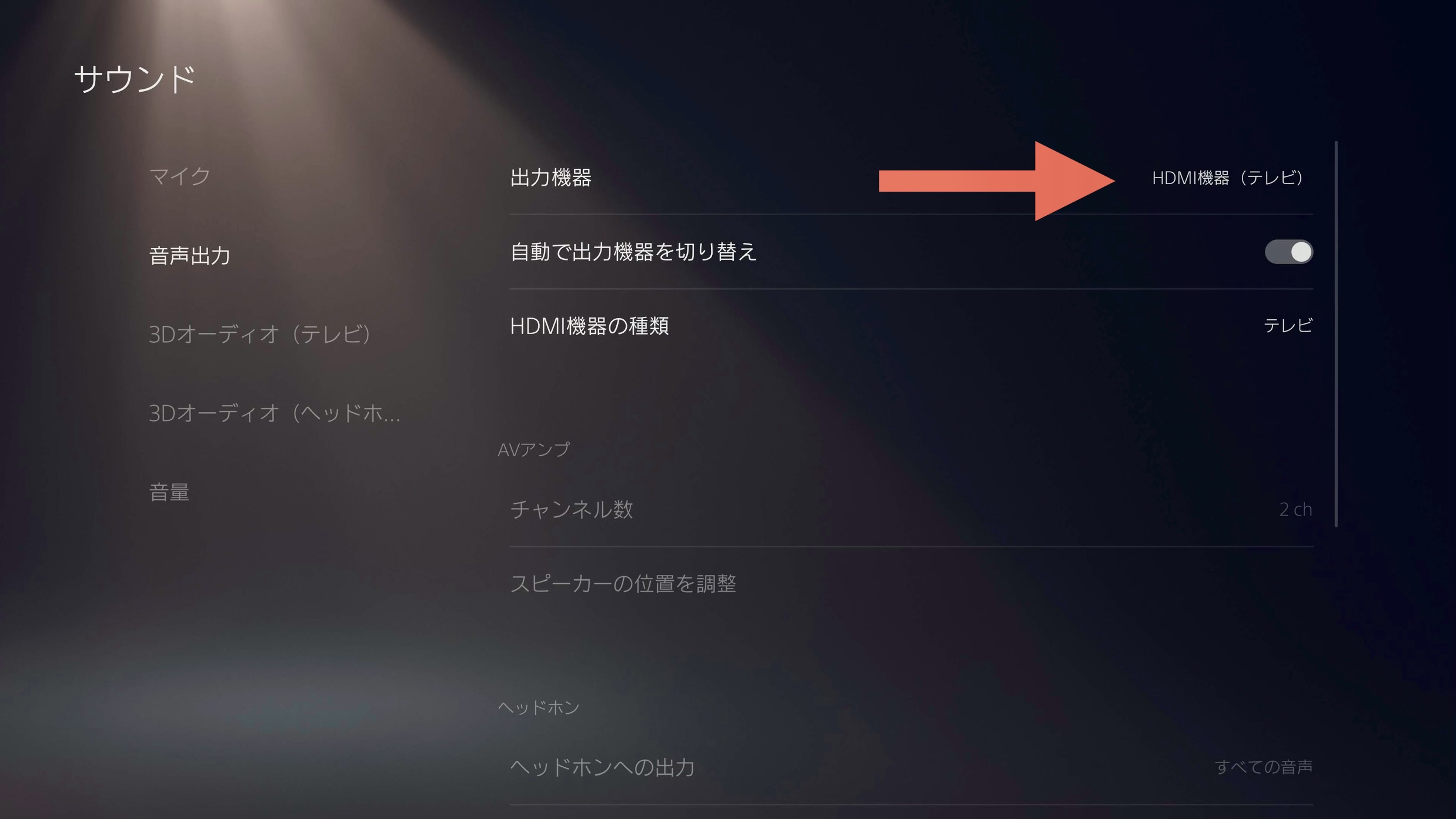 - オーディオ出力設定