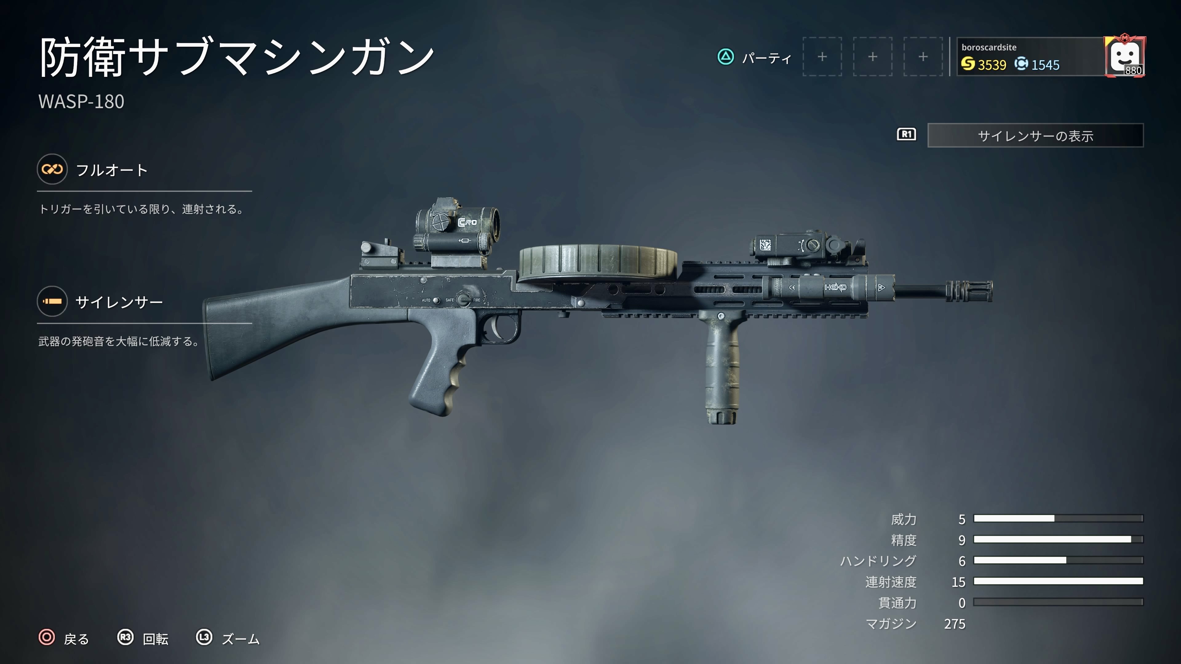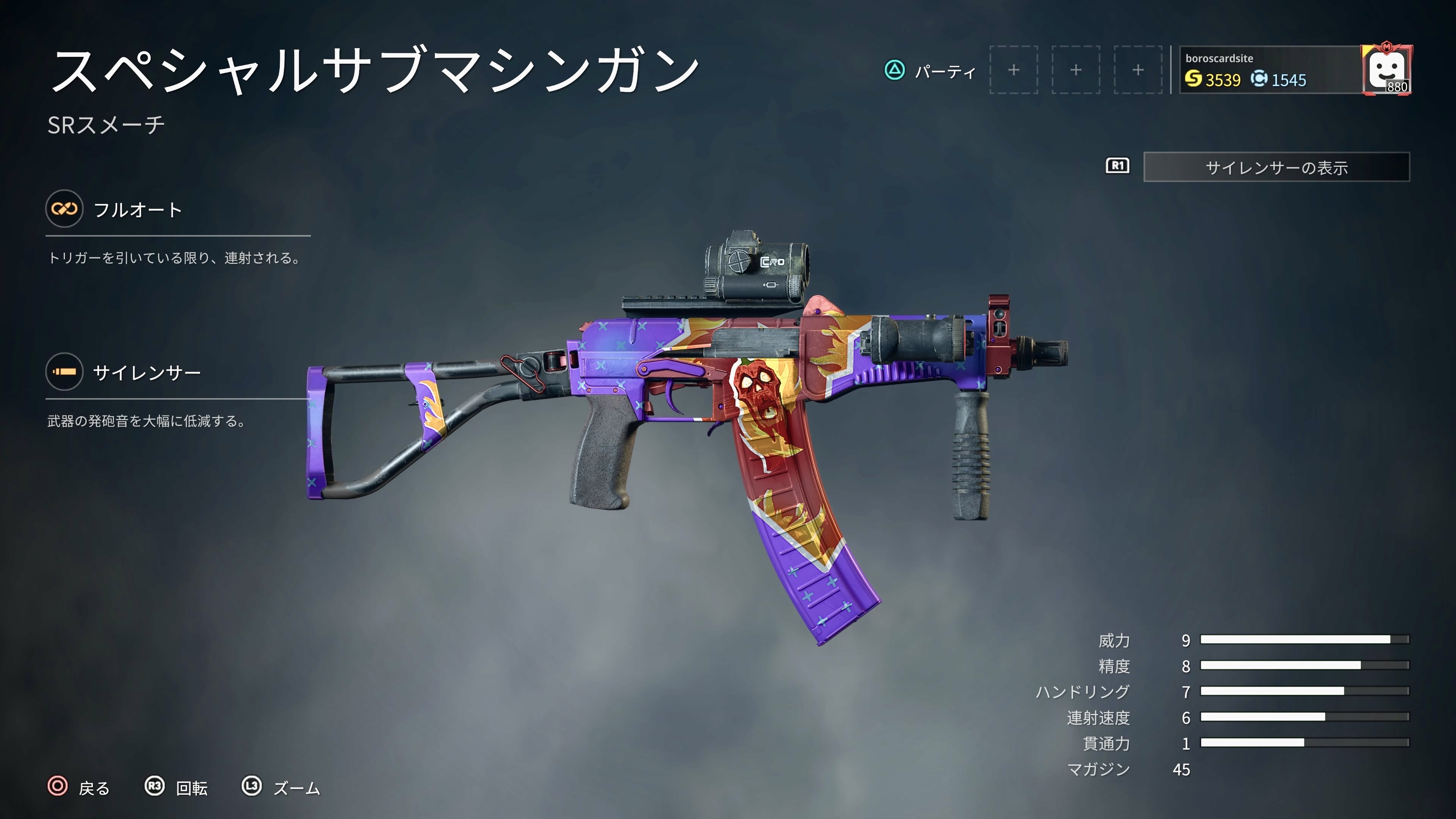 名声ランク2周回目にてアンロックされるのは、小型サブマシンガン(ガル9)向けパークとスキン